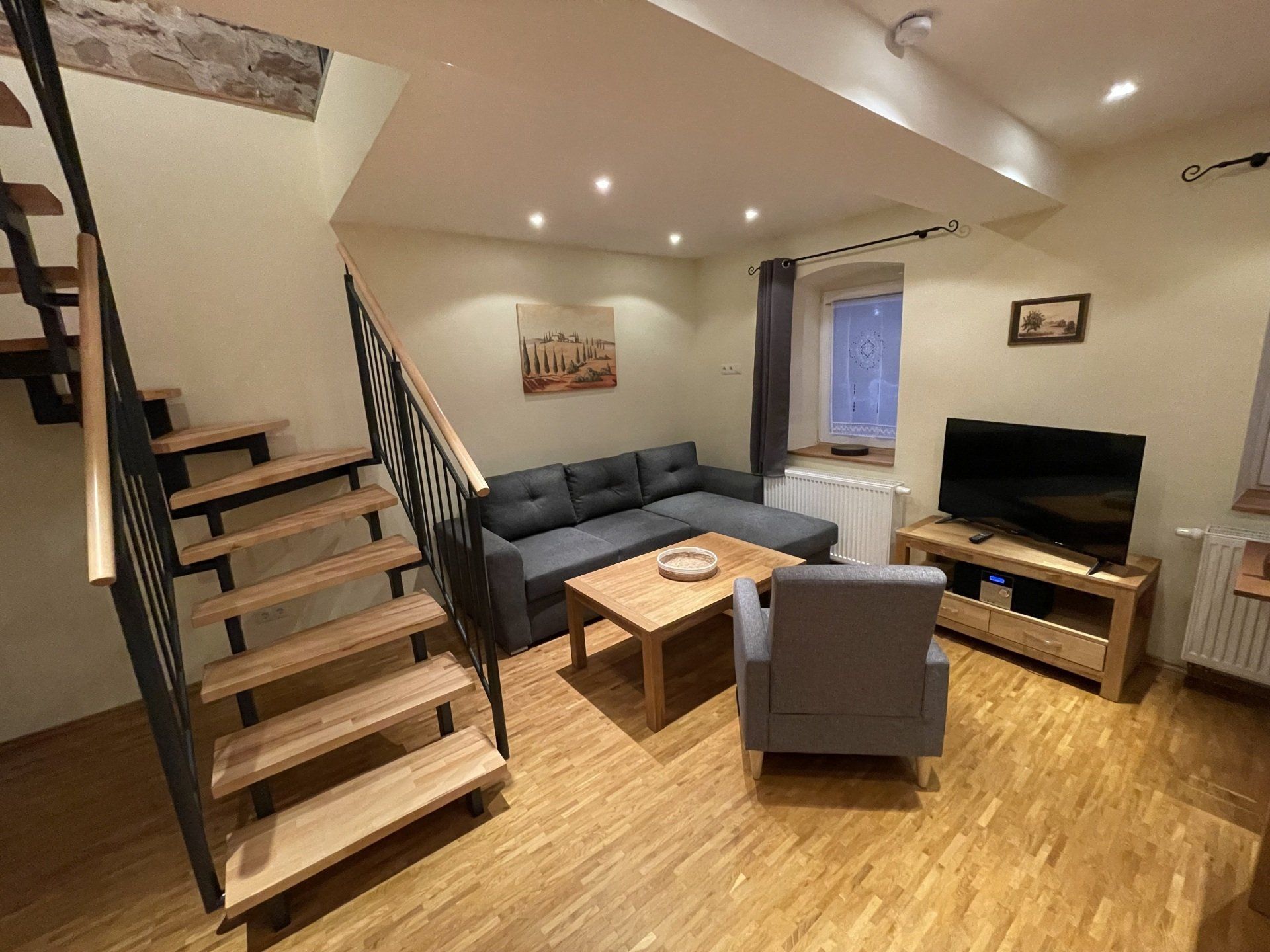 (Bett im Sofa: 1,4m x 1,95m), gemütlicher Sitzgruppe und weiterem Essplatz,